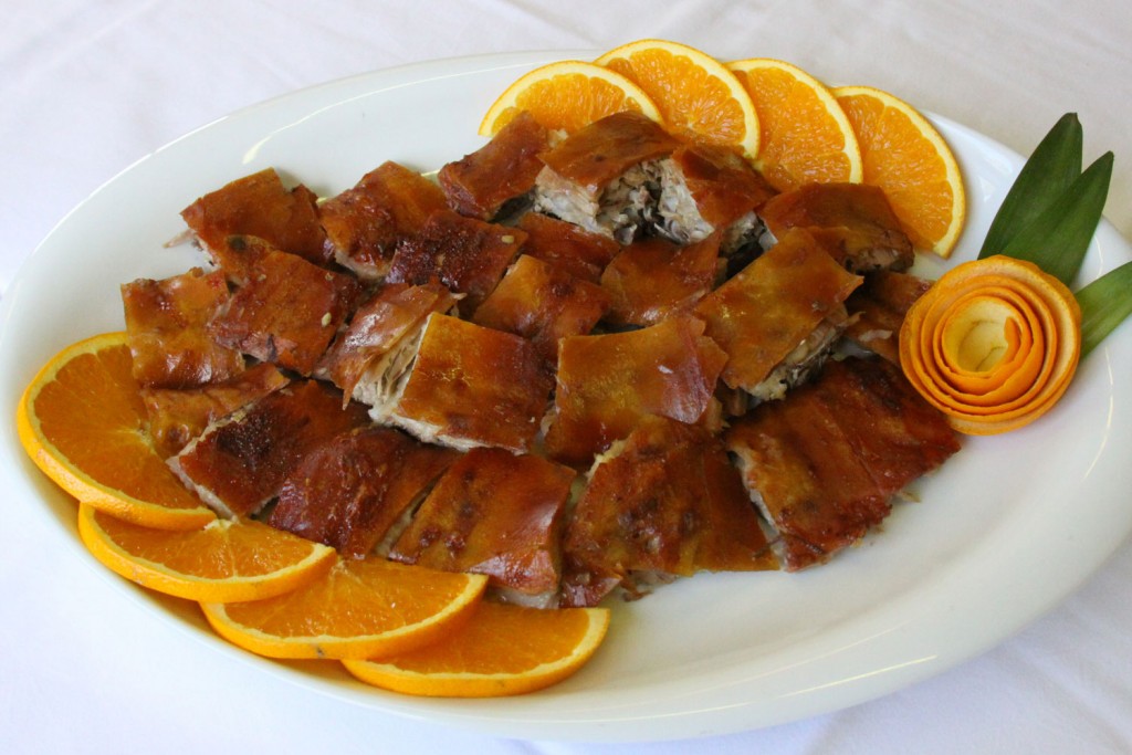 Всё, до ужина осталось 2 часа — ровно столько запекается поросёнок. Это время скоротаем за дегустацией вин, колбас, презунту (то, что соседи-испанцы называют хамоном) и сыров, байками из жизни, а также наблюдением за действиями человека, ответственного за печь. Вот Вы знаете, как жарщик поросят узнаёт, когда наступает подходящий момент для помещения вертела с тушкой в печь?… Перед подачей поросенка на стол сделаем салат из листьев салата, лука и помидоров и заправим его винным уксусом с домашним оливковым маслом. Обязательно нарежем парочку апельсинов и откупорим холодное португальское сухое игристое (выберем местное, из региона Байррада)! Именно так и подают поросёнка в регионе Байррада: салат, апельсины, острый перечно-чесночный соус, жаренная картошка или чипсы и местное шампанское. Уверена, Вы уже вспоминаете, что лежит у Вас в холодильнике и может быть уничтожено!